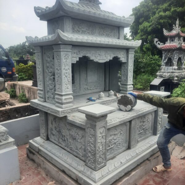 • Mộ đá xanh rêu Thanh Hoá 3 mái đã phủ bóng
