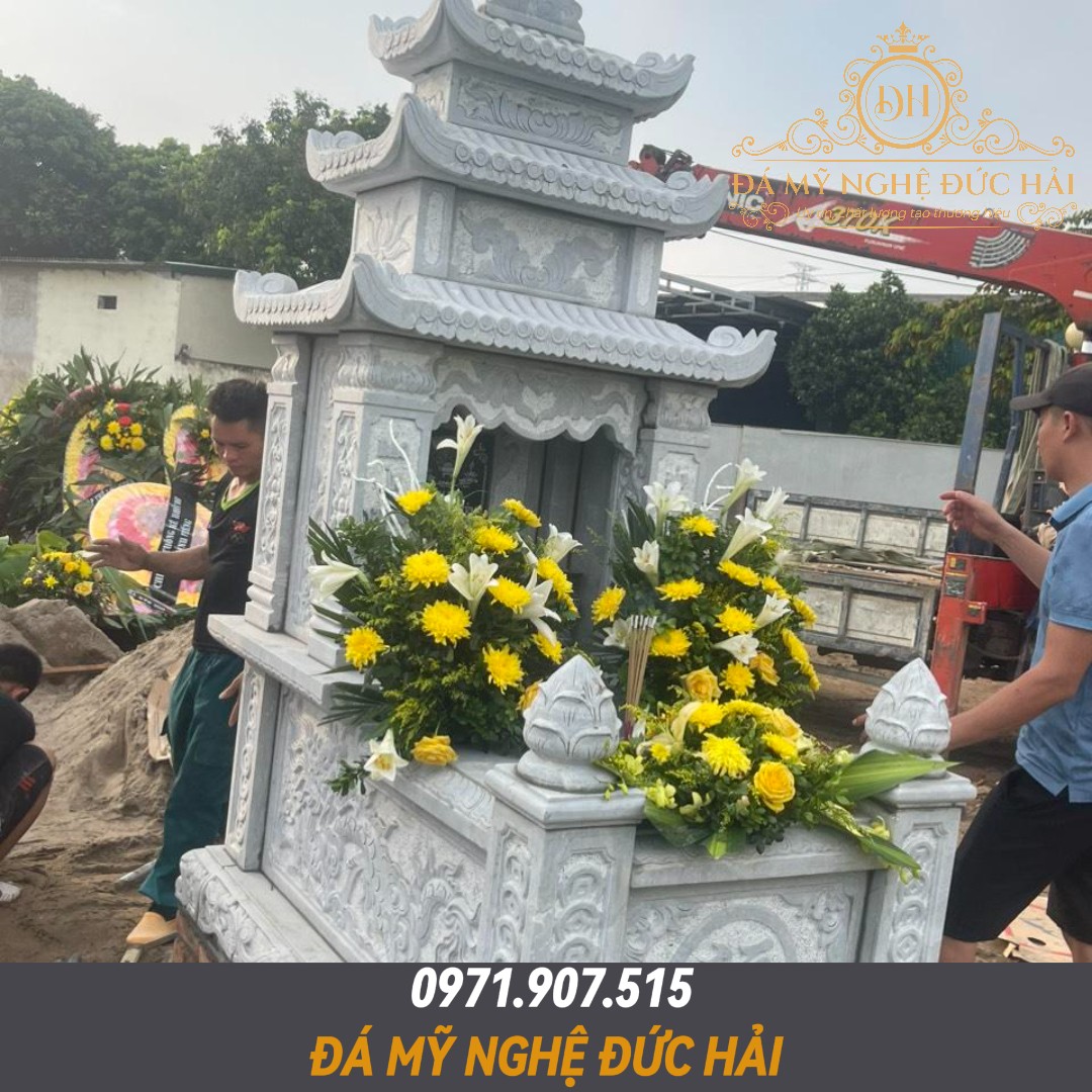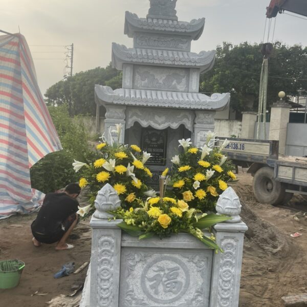 • Mộ đá xanh rêu Thanh Hoá 3 mái đã phủ bóng